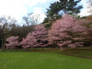 With wide open spaces and many sakura trees,